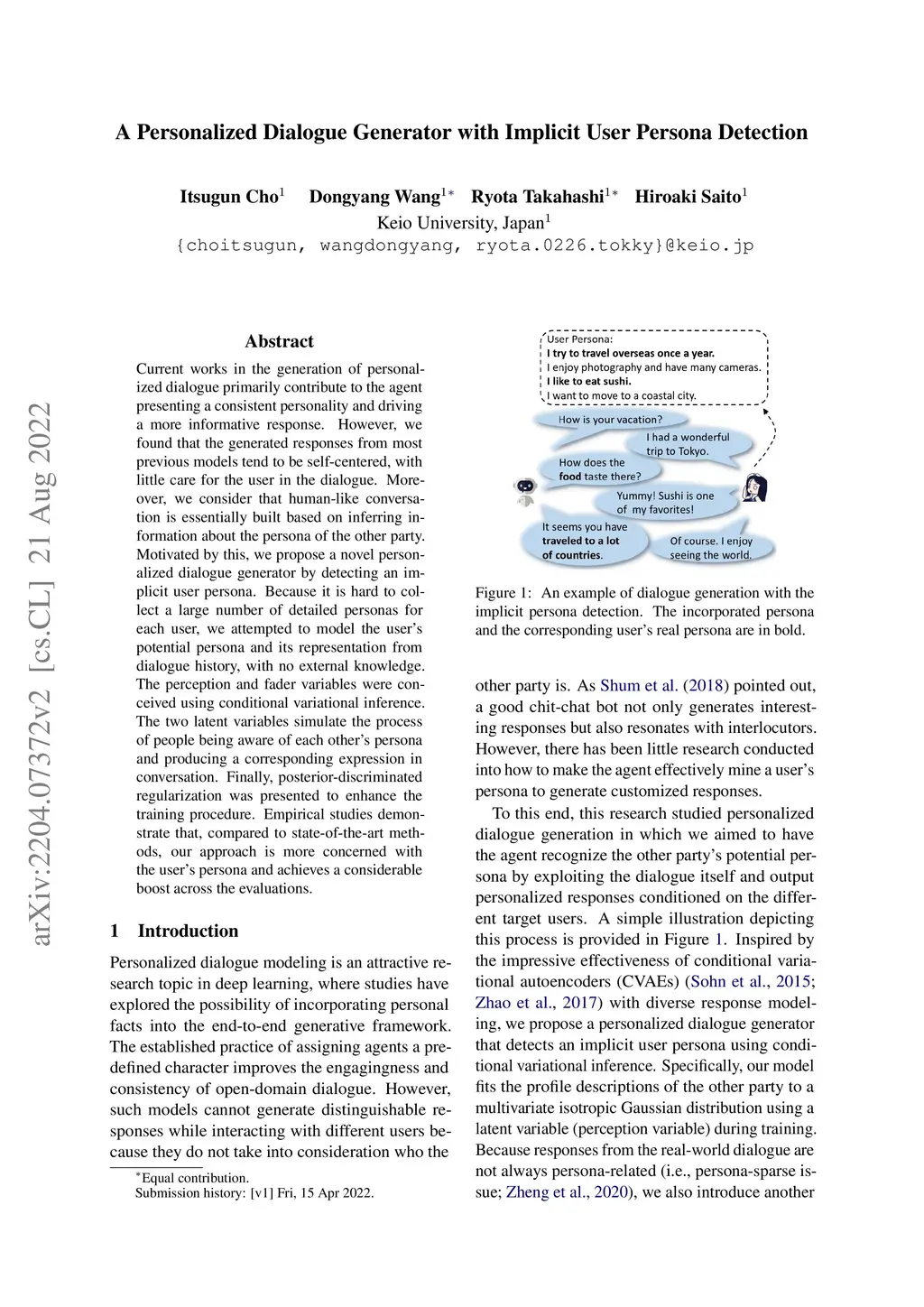 A Personalized Dialogue Generator with Implicit User Persona Detection