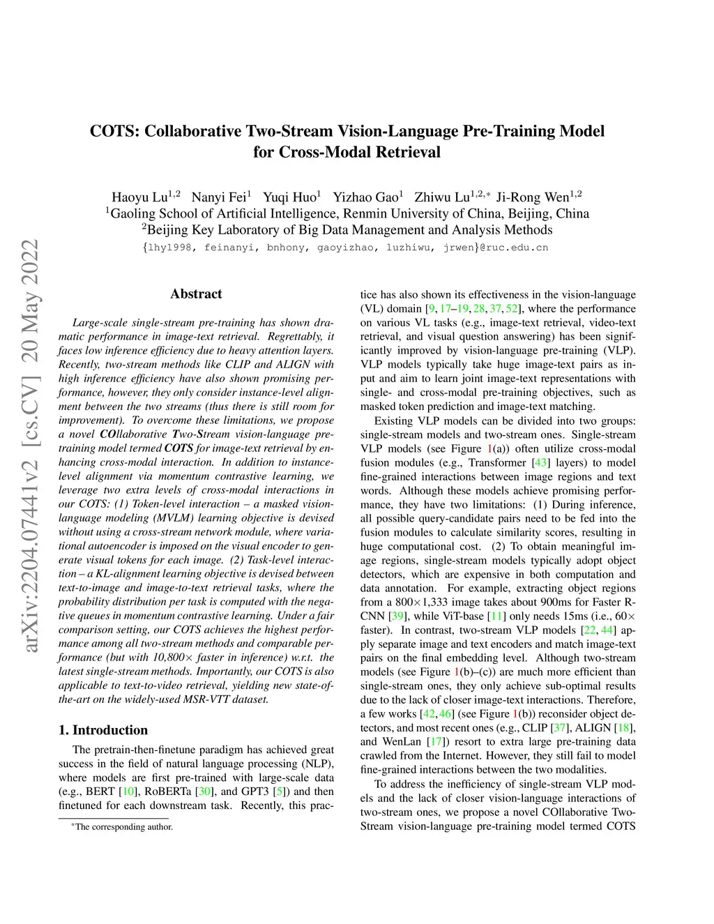 COTS: Collaborative Two-Stream Vision-Language Pre-Training Model for
