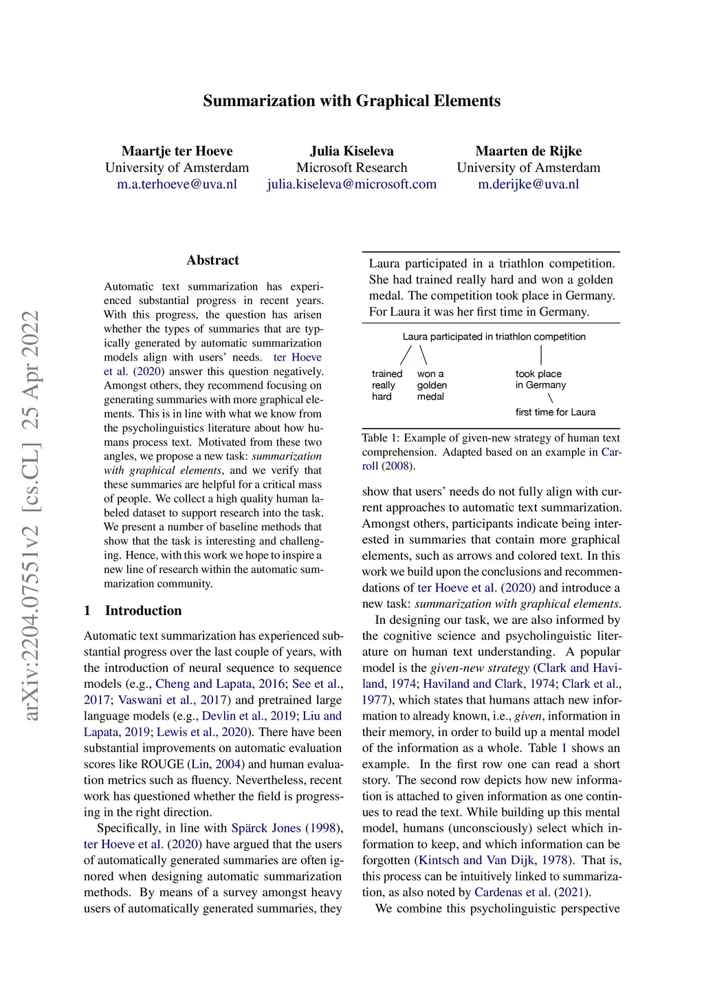 Summarization with Graphical Elements