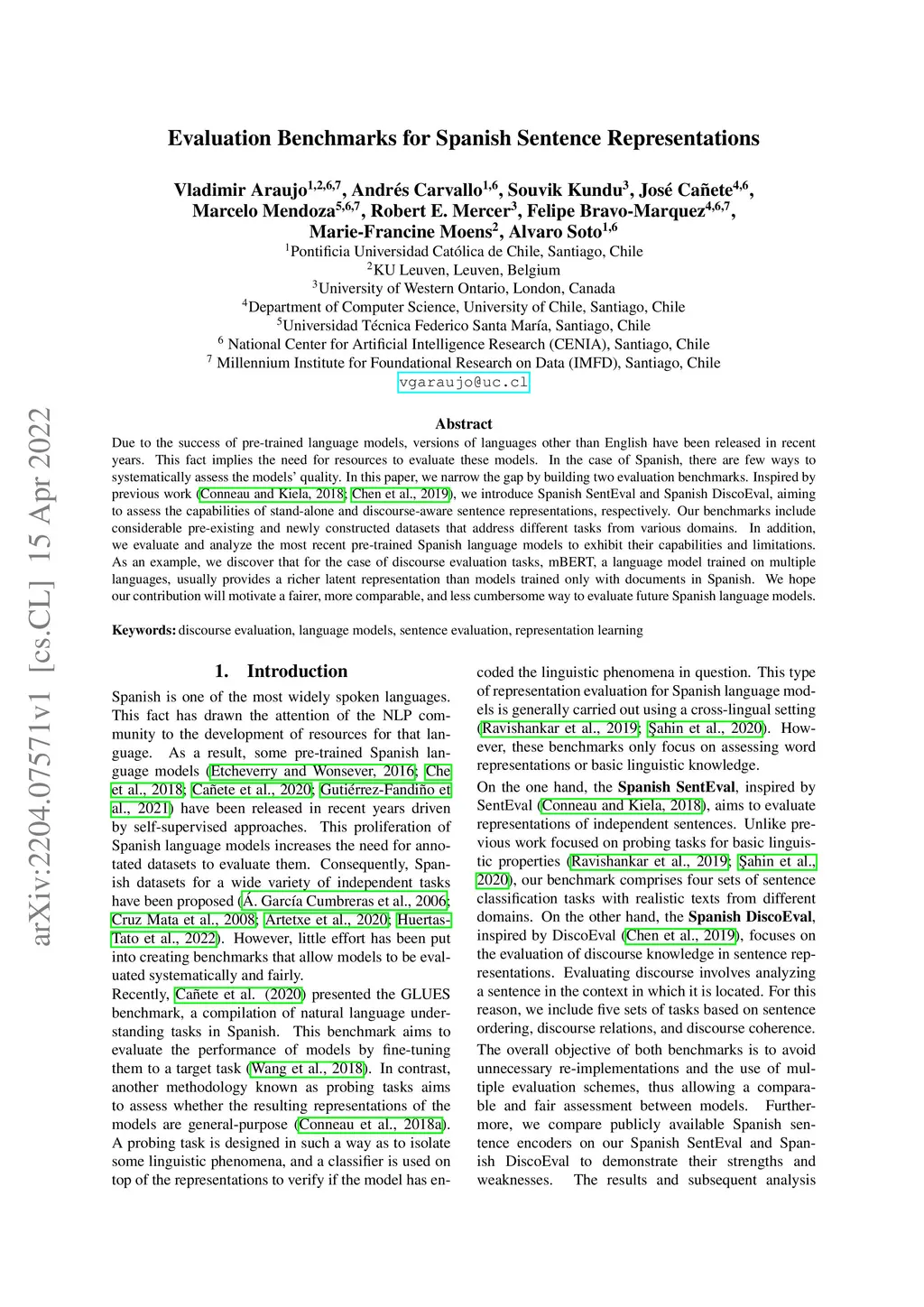 Due to the success of pre-trained language models, versions of languages other than English have been released in recent years. This fact implies the need for resources to evaluate these models. In the case of Spanish, there are few ways to systematically assess the models' quality. In this paper, we narrow the gap by building two evaluation benchmarks. Inspired by previous work (Conneau and Kiela, 2018; Chen et al., 2019), we introduce Spanish SentEval and Spanish DiscoEval, aiming to assess the capabilities of stand-alone and discourse-aware sentence representations, respectively. Our benchmarks include considerable pre-existing and newly constructed datasets that address different tasks from various domains. In addition, we evaluate and analyze the most recent pre-trained Spanish language models to exhibit their capabilities and limitations. As an example, we discover that for the case of discourse evaluation tasks, mBERT, a language model trained on multiple languages, usually provides a richer latent representation than models trained only with documents in Spanish. We hope our contribution will motivate a fairer, more comparable, and less cumbersome way to evaluate future Spanish language models.