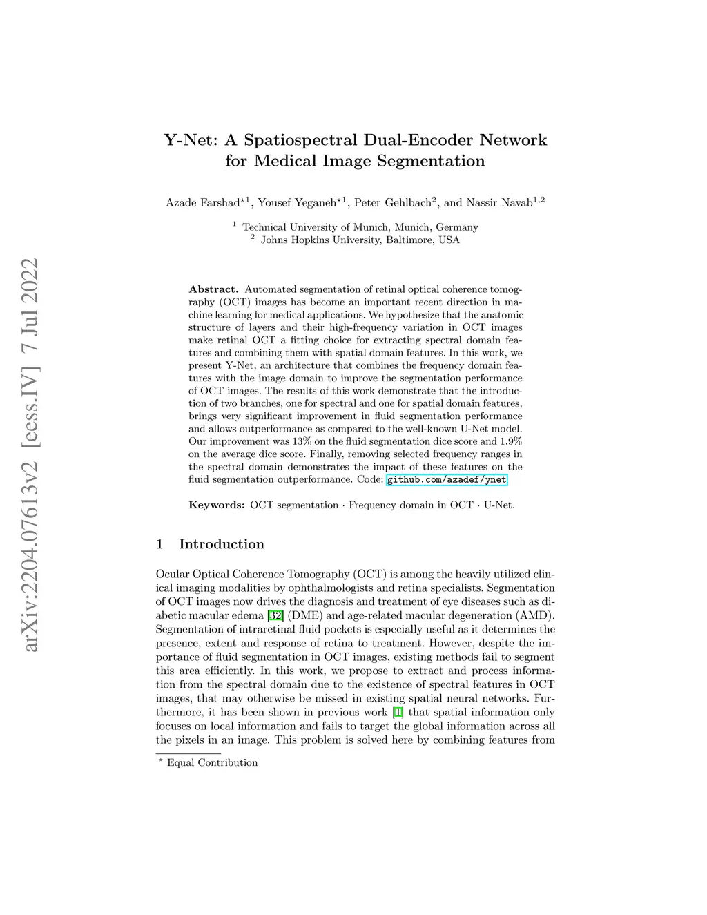 Y-Net: A Spatiospectral Dual-Encoder Networkfor Medical Image