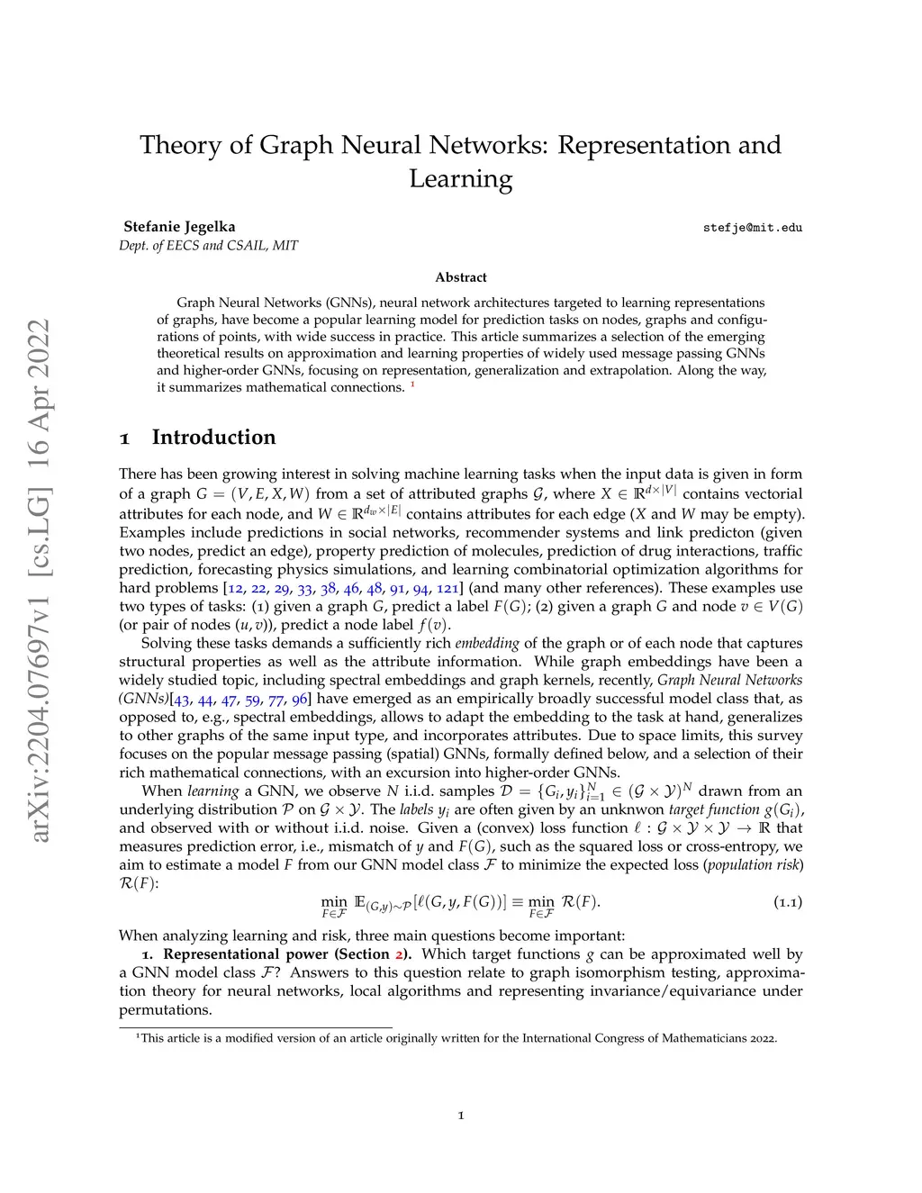 Graph Neural Networks (GNNs), neural network architectures targeted to learning representations of graphs, have become a popular learning model for prediction tasks on nodes, graphs and configurations of points, with wide success in practice. This article summarizes a selection of the emerging theoretical results on approximation and learning properties of widely used message passing GNNs and higher-order GNNs, focusing on representation, generalization and extrapolation. Along the way, it summarizes mathematical connections.