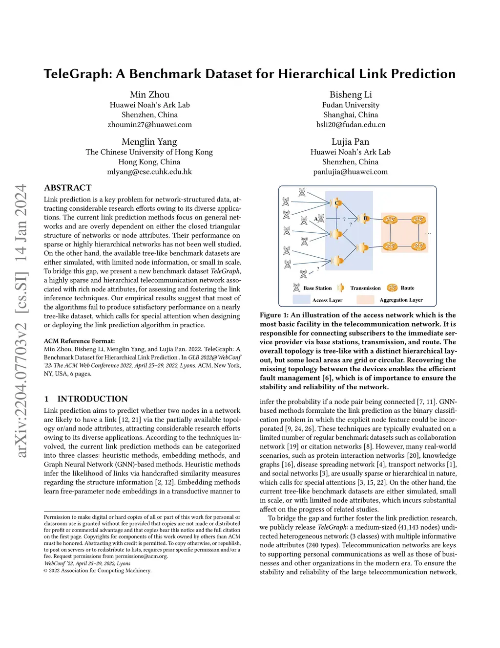 TeleGraph: A Benchmark Dataset for Hierarchical Link Prediction