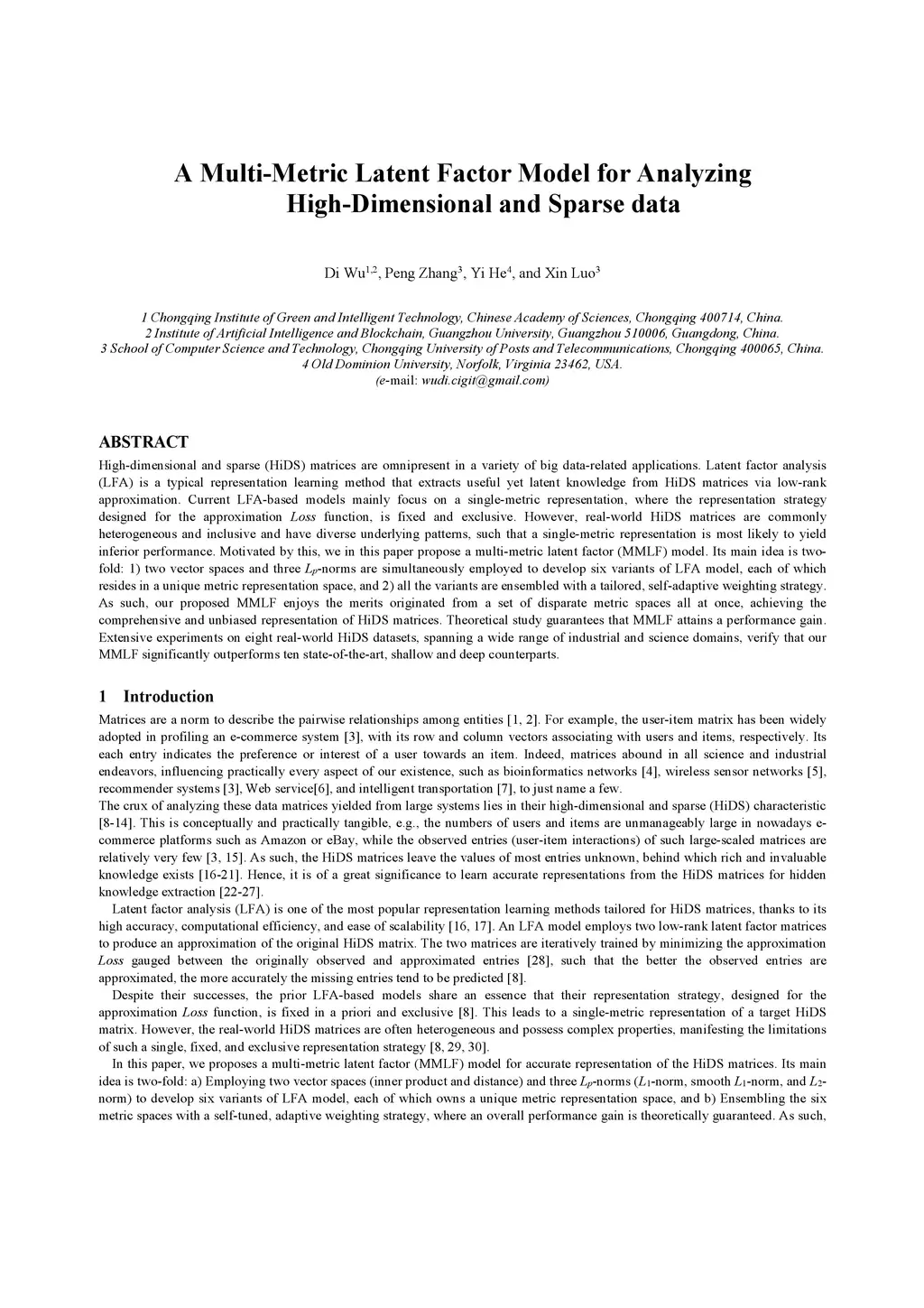 A Multi-Metric Latent Factor Model for Analyzing High-Dimensional and