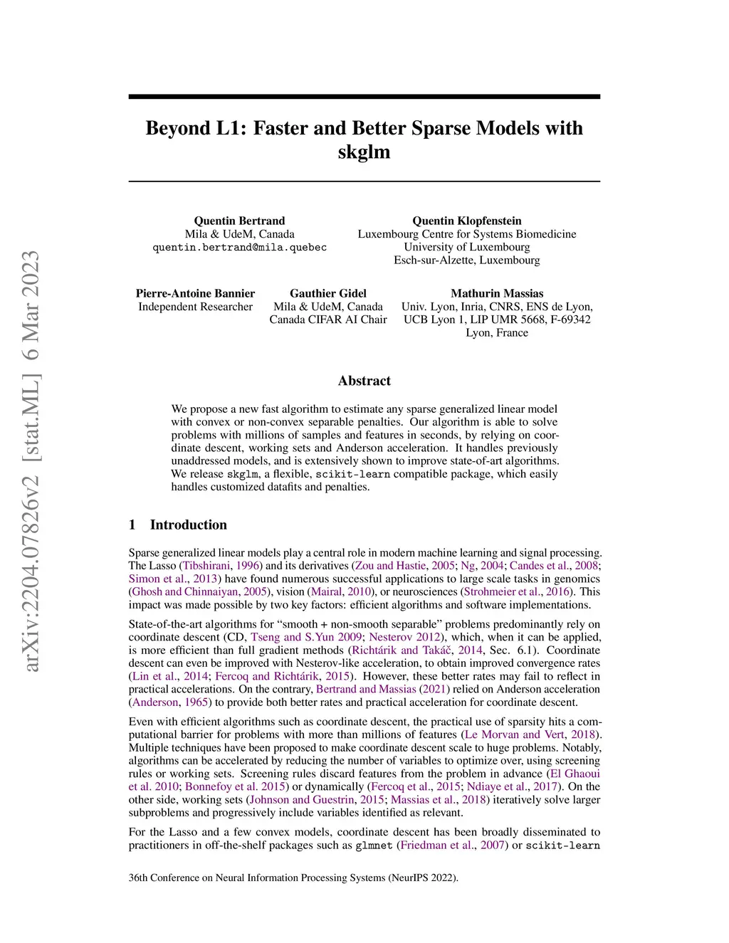 Beyond L1: Faster and Better Sparse Models with skglm
