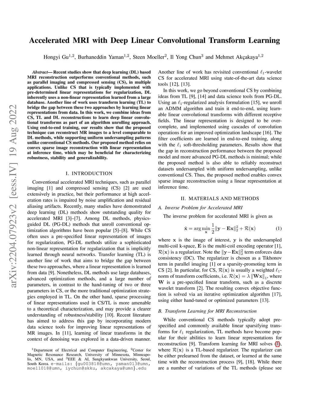 Accelerated MRI With Deep Linear Convolutional Transform Learning