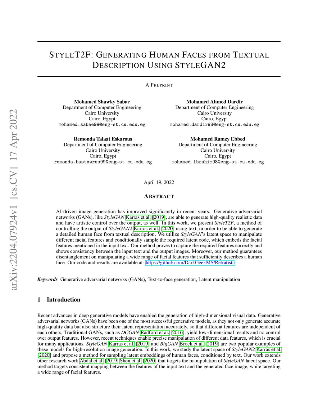 AI-driven image generation has improved significantly in recent years. Generative adversarial networks (GANs), like StyleGAN, are able to generate high-quality realistic data and have artistic control over the output, as well. In this work, we present StyleT2F, a method of controlling the output of StyleGAN2 using text, in order to be able to generate a detailed human face from textual description. We utilize StyleGAN's latent space to manipulate different facial features and conditionally sample the required latent code, which embeds the facial features mentioned in the input text. Our method proves to capture the required features correctly and shows consistency between the input text and the output images. Moreover, our method guarantees disentanglement on manipulating a wide range of facial features that sufficiently describes a human face.