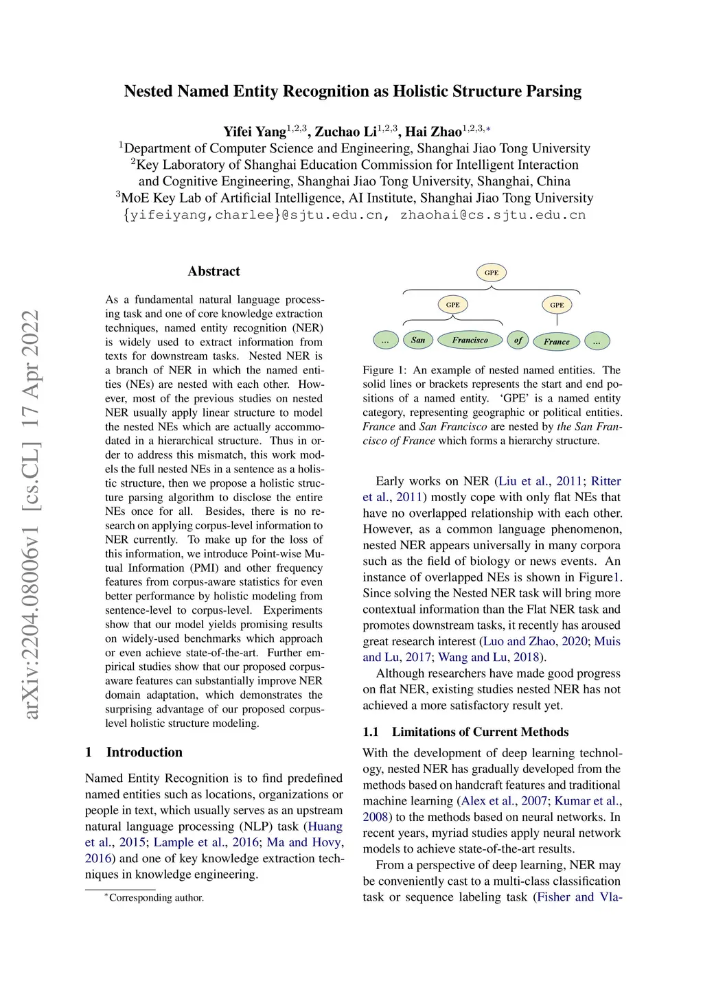 Nested Named Entity Recognition as Holistic Structure Parsing