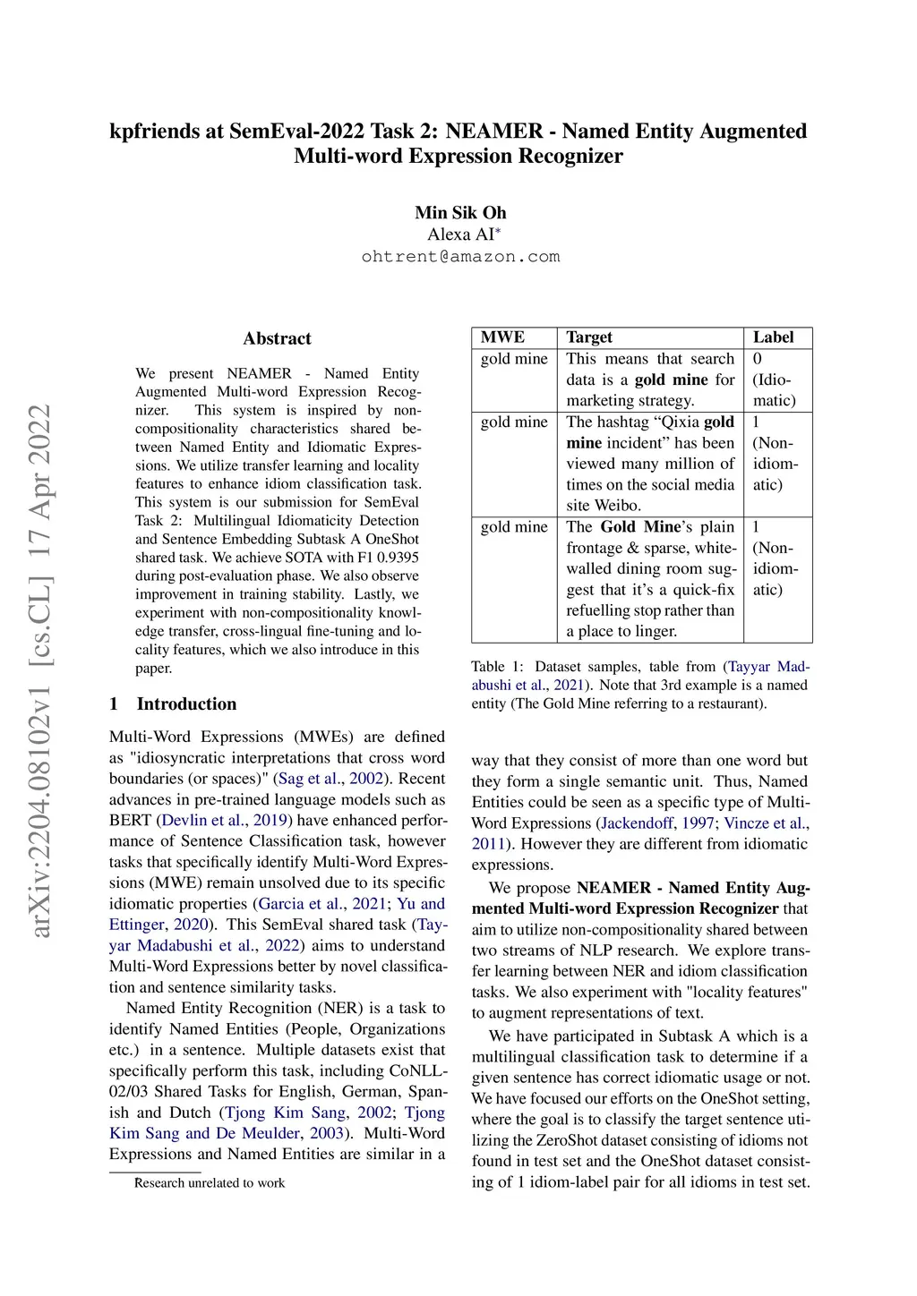 kpfriends at SemEval-2022 Task 2: NEAMER -- Named Entity Augmented