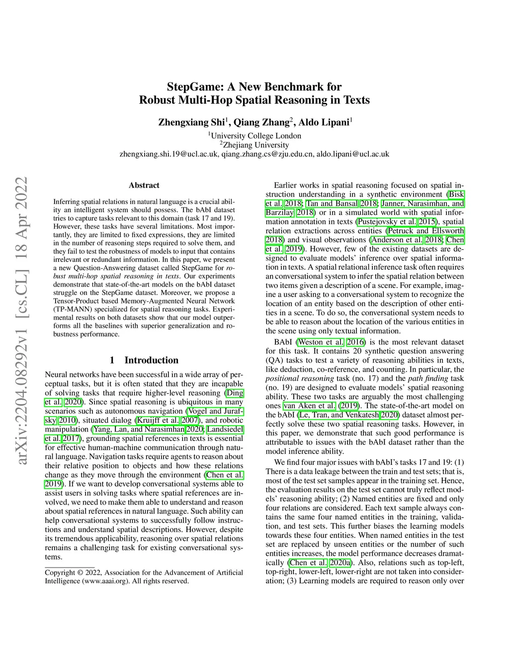 StepGame: A New Benchmark for Robust Multi-Hop Spatial Reasoning in