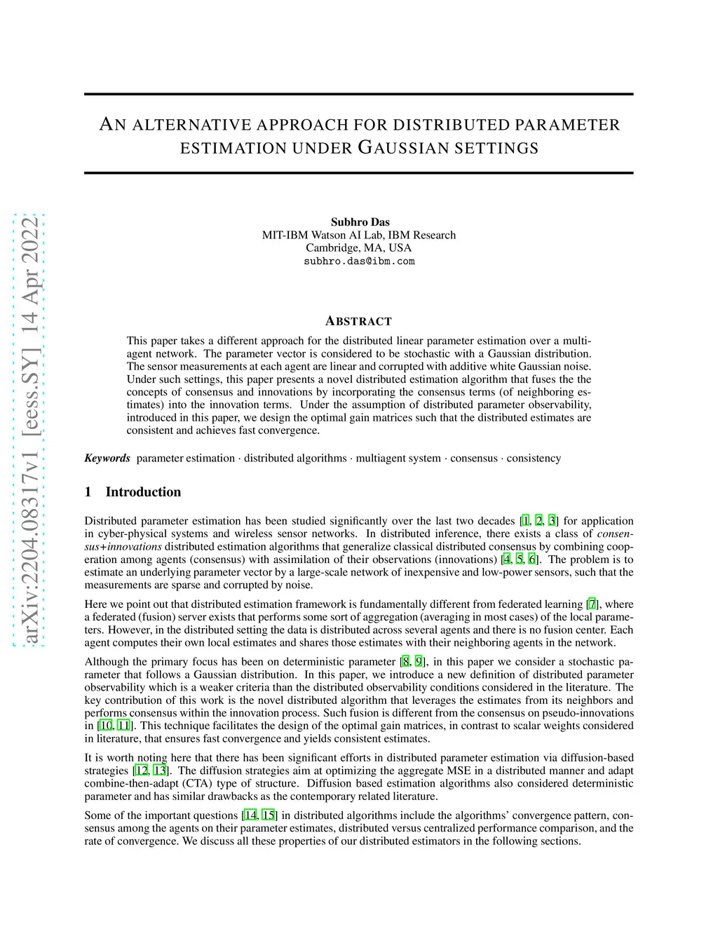 An alternative approach for distributed parameter estimation under