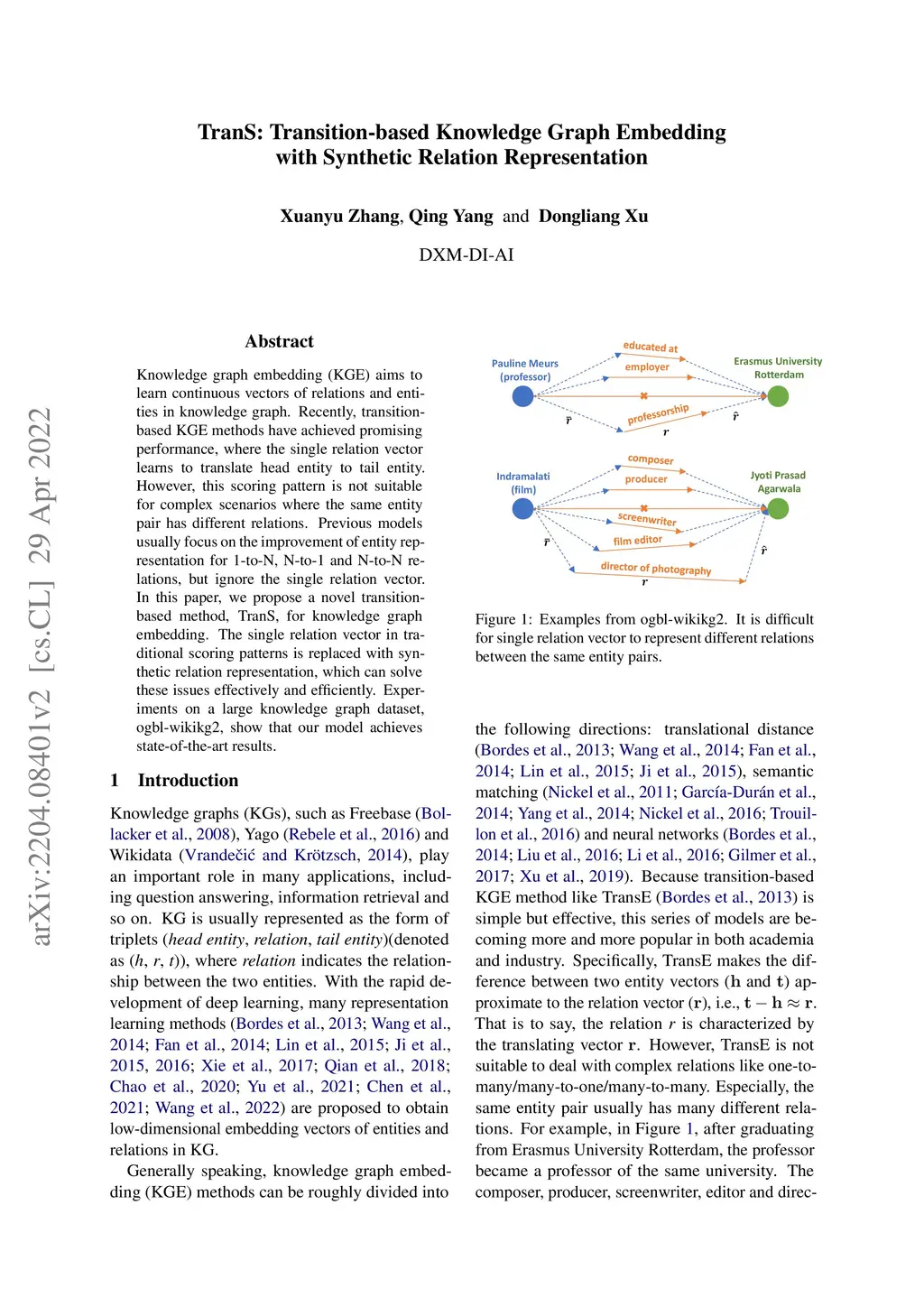 TranS: Transition-based Knowledge Graph Embedding with Synthetic
