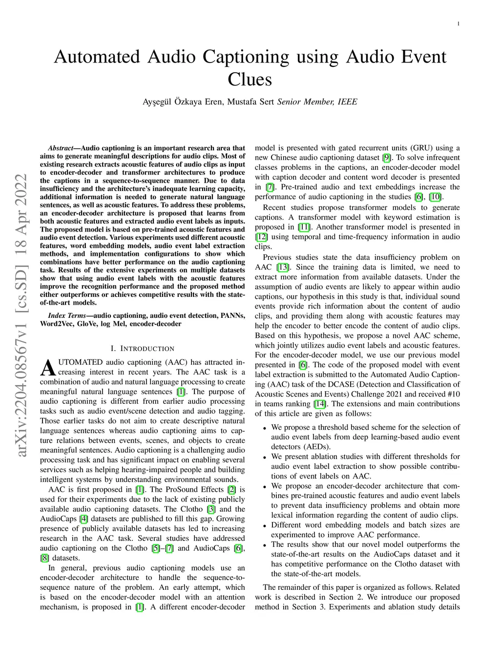 Audio captioning is an important research area that aims to generate meaningful descriptions for audio clips. Most of the existing research extracts acoustic features of audio clips as input to encoder-decoder and transformer architectures to produce the captions in a sequence-to-sequence manner. Due to data insufficiency and the architecture's inadequate learning capacity, additional information is needed to generate natural language sentences, as well as acoustic features. To address these problems, an encoder-decoder architecture is proposed that learns from both acoustic features and extracted audio event labels as inputs. The proposed model is based on pre-trained acoustic features and audio event detection. Various experiments used different acoustic features, word embedding models, audio event label extraction methods, and implementation configurations to show which combinations have better performance on the audio captioning task. Results of the extensive experiments on multiple datasets show that using audio event labels with the acoustic features improves the recognition performance and the proposed method either outperforms or achieves competitive results with the state-of-the-art models.