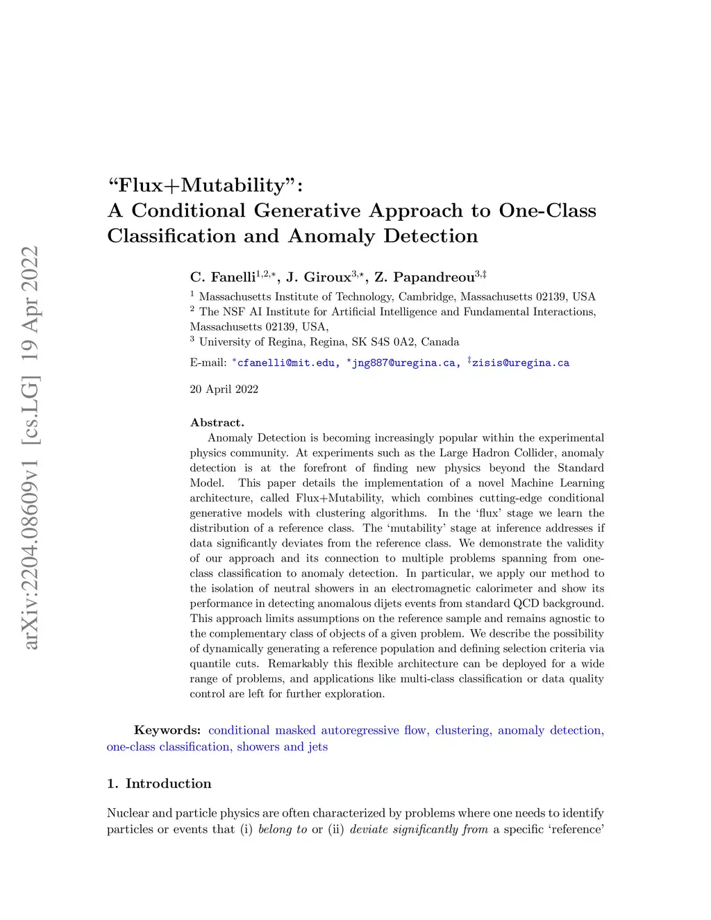 Anomaly Detection is becoming increasingly popular within the experimental physics community. At experiments such as the Large Hadron Collider, anomaly detection is at the forefront of finding new physics beyond the Standard Model. This paper details the implementation of a novel Machine Learning architecture, called Flux+Mutability, which combines cutting-edge conditional generative models with clustering algorithms. In the `flux' stage we learn the distribution of a reference class. The `mutability' stage at inference addresses if data significantly deviates from the reference class. We demonstrate the validity of our approach and its connection to multiple problems spanning from one-class classification to anomaly detection. In particular, we apply our method to the isolation of neutral showers in an electromagnetic calorimeter and show its performance in detecting anomalous dijets events from standard QCD background. This approach limits assumptions on the reference sample and remains agnostic to the complementary class of objects of a given problem. We describe the possibility of dynamically generating a reference population and defining selection criteria via quantile cuts. Remarkably this flexible architecture can be deployed for a wide range of problems, and applications like multi-class classification or data quality control are left for further exploration.