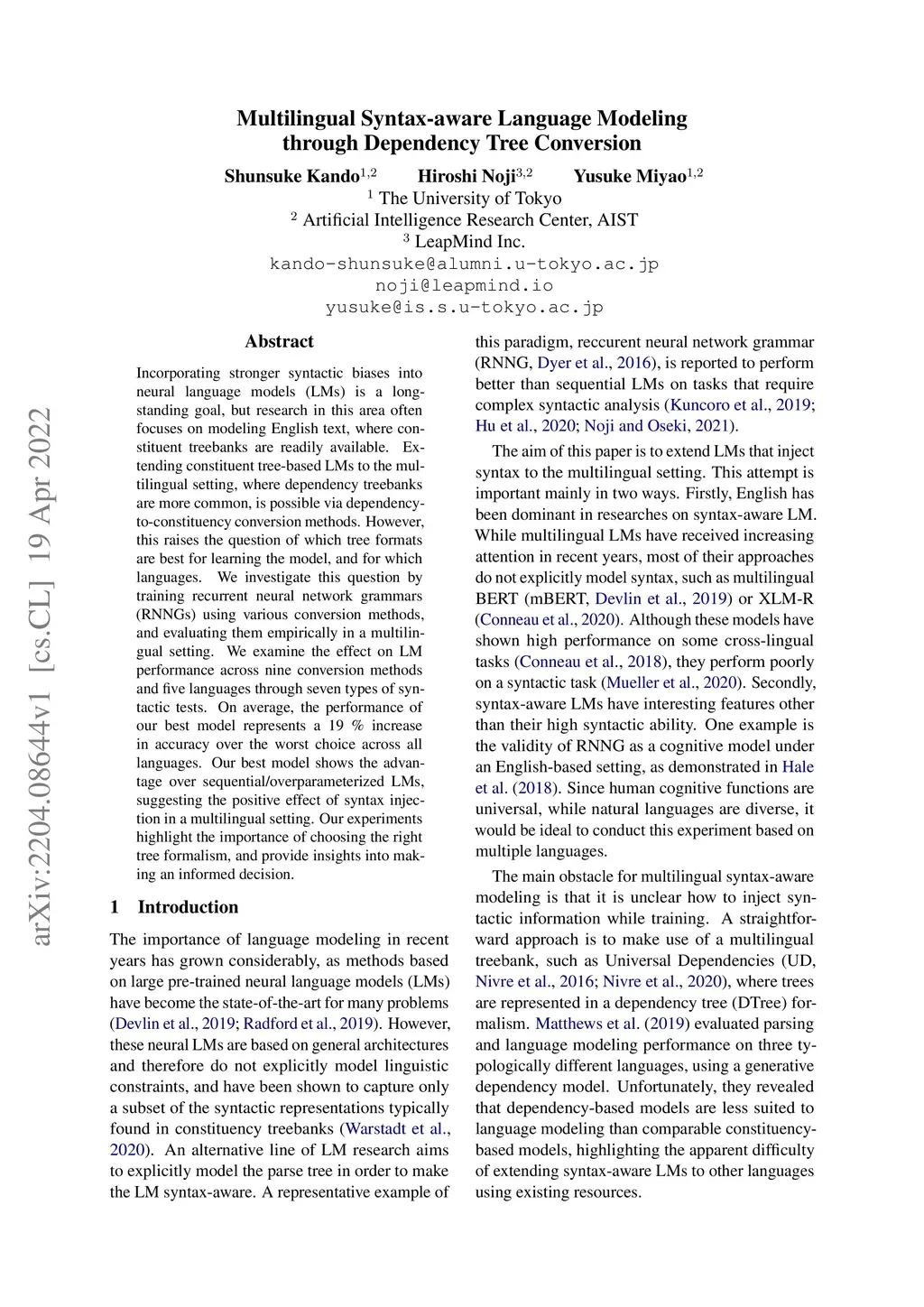 Multilingual Syntax-aware Language Modeling through Dependency Tree