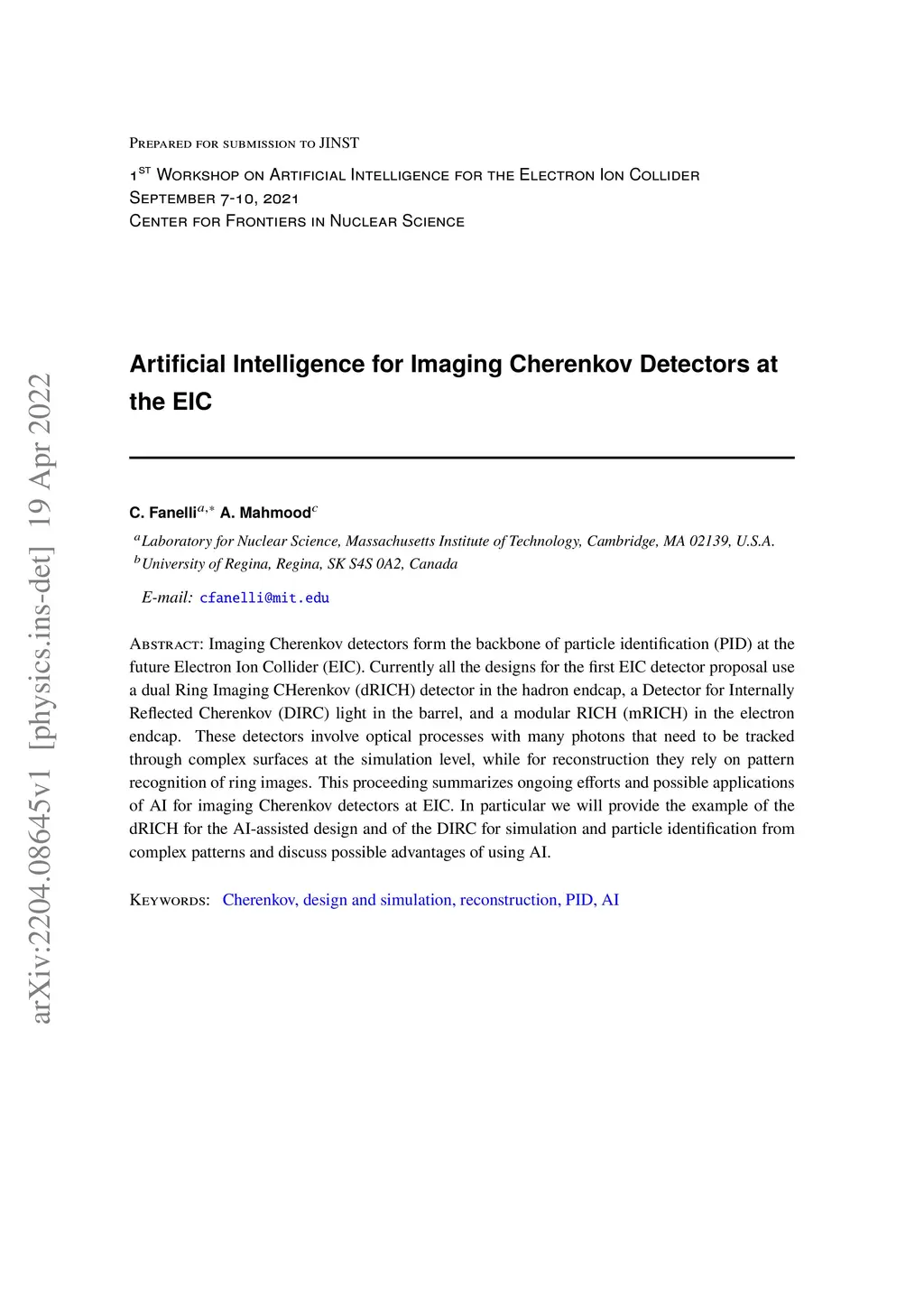 Imaging Cherenkov detectors form the backbone of particle identification (PID) at the future Electron Ion Collider (EIC). Currently all the designs for the first EIC detector proposal use a dual Ring Imaging CHerenkov (dRICH) detector in the hadron endcap, a Detector for Internally Reflected Cherenkov (DIRC) light in the barrel, and a modular RICH (mRICH) in the electron endcap. These detectors involve optical processes with many photons that need to be tracked through complex surfaces at the simulation level, while for reconstruction they rely on pattern recognition of ring images. This proceeding summarizes ongoing efforts and possible applications of AI for imaging Cherenkov detectors at EIC. In particular we will provide the example of the dRICH for the AI-assisted design and of the DIRC for simulation and particle identification from complex patterns and discuss possible advantages of using AI.