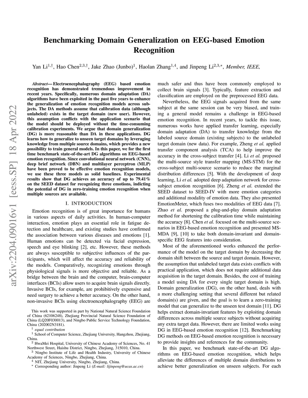 Benchmarking Domain Generalization on EEG-based Emotion Recognition