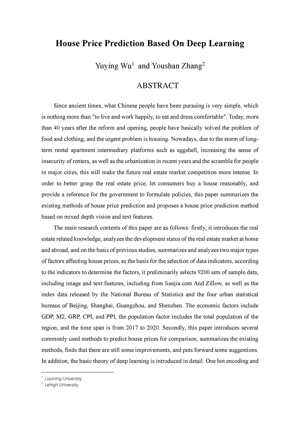 Since ancient times, what Chinese people have been pursuing is very simple, which is nothing more than "to live and work happily, to eat and dress comfortable". Today, more than 40 years after the reform and opening, people have basically solved the problem of food and clothing, and the urgent problem is housing. Nowadays, due to the storm of long-term rental apartment intermediary platforms such as eggshell, increasing the sense of insecurity of renters, as well as the urbanization in recent years and the scramble for people in major cities, this will make the future real estate market competition more intense. In order to better grasp the real estate price, let consumers buy a house reasonably, and provide a reference for the government to formulate policies, this paper summarizes the existing methods of house price prediction and proposes a house price prediction method based on mixed depth vision and text features.