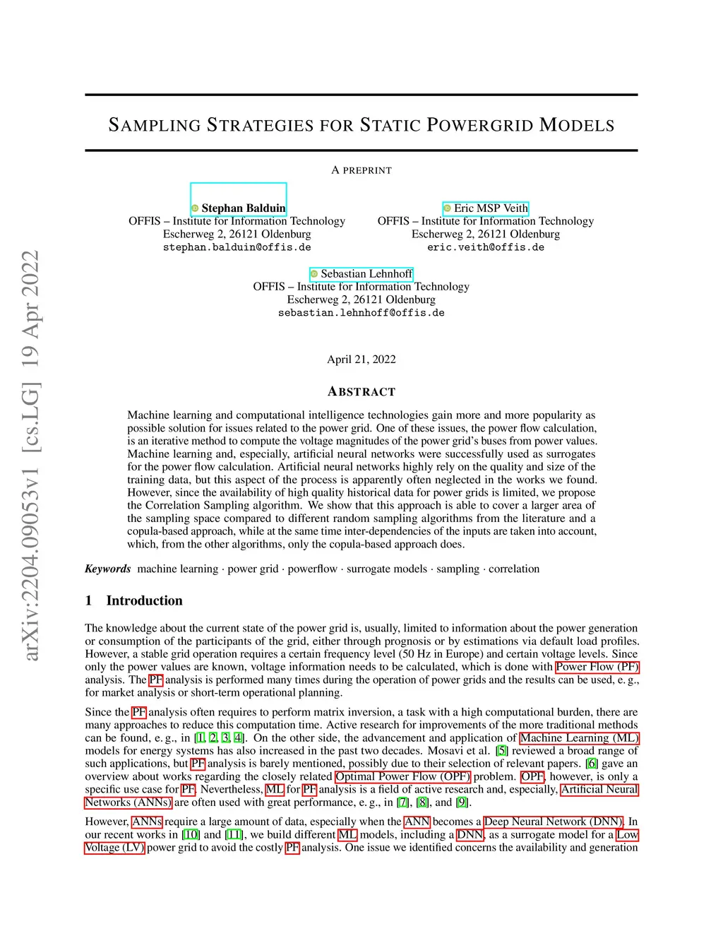 Machine learning and computational intelligence technologies gain more and more popularity as possible solution for issues related to the power grid. One of these issues, the power flow calculation, is an iterative method to compute the voltage magnitudes of the power grid's buses from power values. Machine learning and, especially, artificial neural networks were successfully used as surrogates for the power flow calculation. Artificial neural networks highly rely on the quality and size of the training data, but this aspect of the process is apparently often neglected in the works we found. However, since the availability of high quality historical data for power grids is limited, we propose the Correlation Sampling algorithm. We show that this approach is able to cover a larger area of the sampling space compared to different random sampling algorithms from the literature and a copula-based approach, while at the same time inter-dependencies of the inputs are taken into account, which, from the other algorithms, only the copula-based approach does.