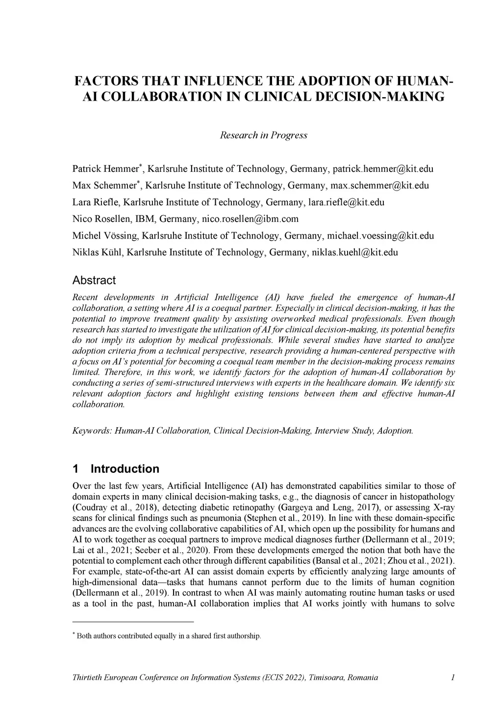Factors that influence the adoption of human-AI collaboration in