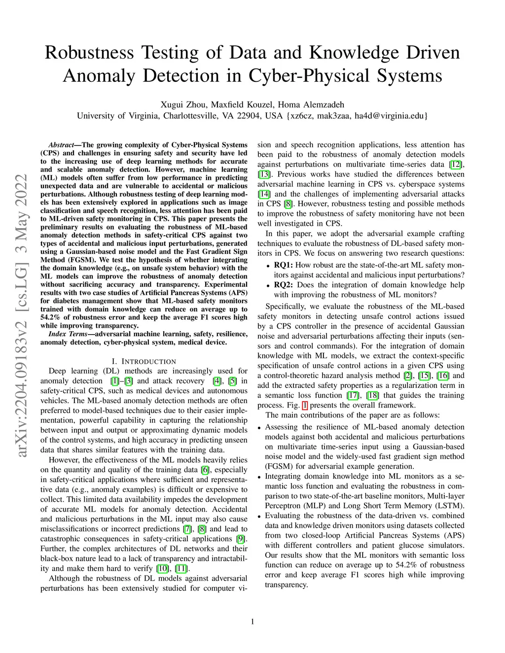 The growing complexity of Cyber-Physical Systems (CPS) and challenges in ensuring safety and security have led to the increasing use of deep learning methods for accurate and scalable anomaly detection. However, machine learning (ML) models often suffer from low performance in predicting unexpected data and are vulnerable to accidental or malicious perturbations. Although robustness testing of deep learning models has been extensively explored in applications such as image classification and speech recognition, less attention has been paid to ML-driven safety monitoring in CPS. This paper presents the preliminary results on evaluating the robustness of ML-based anomaly detection methods in safety-critical CPS against two types of accidental and malicious input perturbations, generated using a Gaussian-based noise model and the Fast Gradient Sign Method (FGSM). We test the hypothesis of whether integrating the domain knowledge (e.g., on unsafe system behavior) with the ML models can improve the robustness of anomaly detection without sacrificing accuracy and transparency. Experimental results with two case studies of Artificial Pancreas Systems (APS) for diabetes management show that ML-based safety monitors trained with domain knowledge can reduce on average up to 54.2% of robustness error and keep the average F1 scores high while improving transparency.