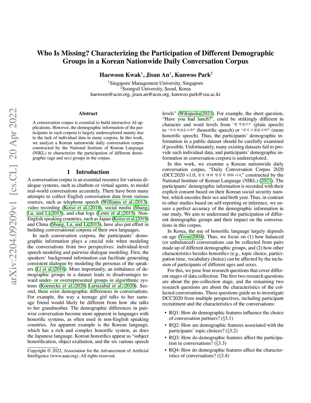 Demographic Groups in a Korean Nationwide Daily Conversation Corpus