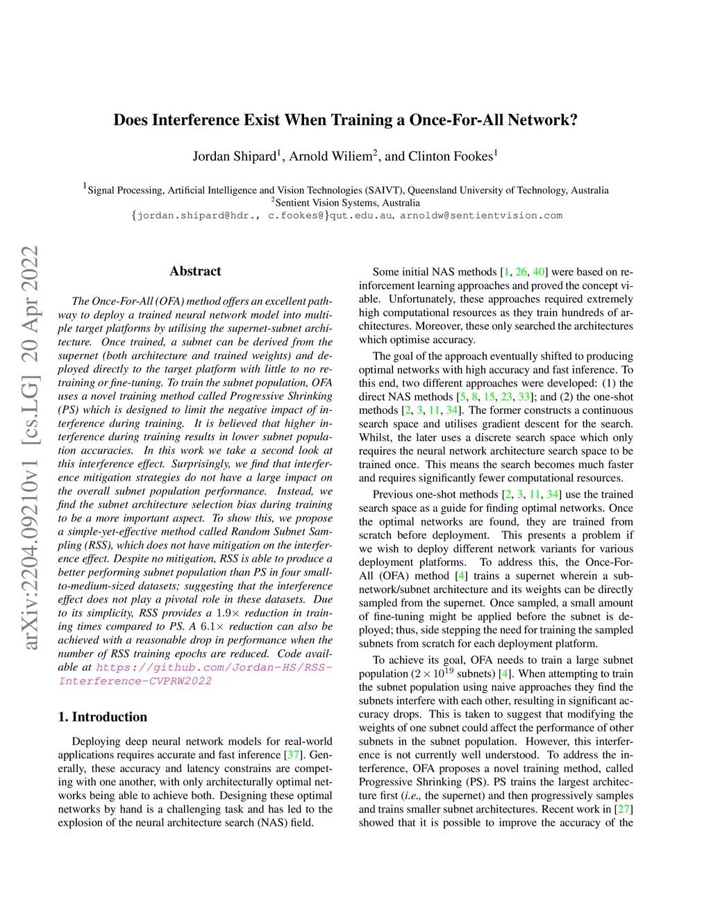 The Once-For-All (OFA) method offers an excellent pathway to deploy a trained neural network model into multiple target platforms by utilising the supernet-subnet architecture. Once trained, a subnet can be derived from the supernet (both architecture and trained weights) and deployed directly to the target platform with little to no retraining or fine-tuning. To train the subnet population, OFA uses a novel training method called Progressive Shrinking (PS) which is designed to limit the negative impact of interference during training. It is believed that higher interference during training results in lower subnet population accuracies. In this work we take a second look at this interference effect. Surprisingly, we find that interference mitigation strategies do not have a large impact on the overall subnet population performance. Instead, we find the subnet architecture selection bias during training to be a more important aspect. To show this, we propose a simple-yet-effective method called Random Subnet Sampling (RSS), which does not have mitigation on the interference effect. Despite no mitigation, RSS is able to produce a better performing subnet population than PS in four small-to-medium-sized datasets; suggesting that the interference effect does not play a pivotal role in these datasets. Due to its simplicity, RSS provides a reduction in training times compared to PS. A reduction can also be achieved with a reasonable drop in performance when the number of RSS training epochs are reduced. Code available at https://github.com/Jordan-HS/RSS-Interference-CVPRW2022.