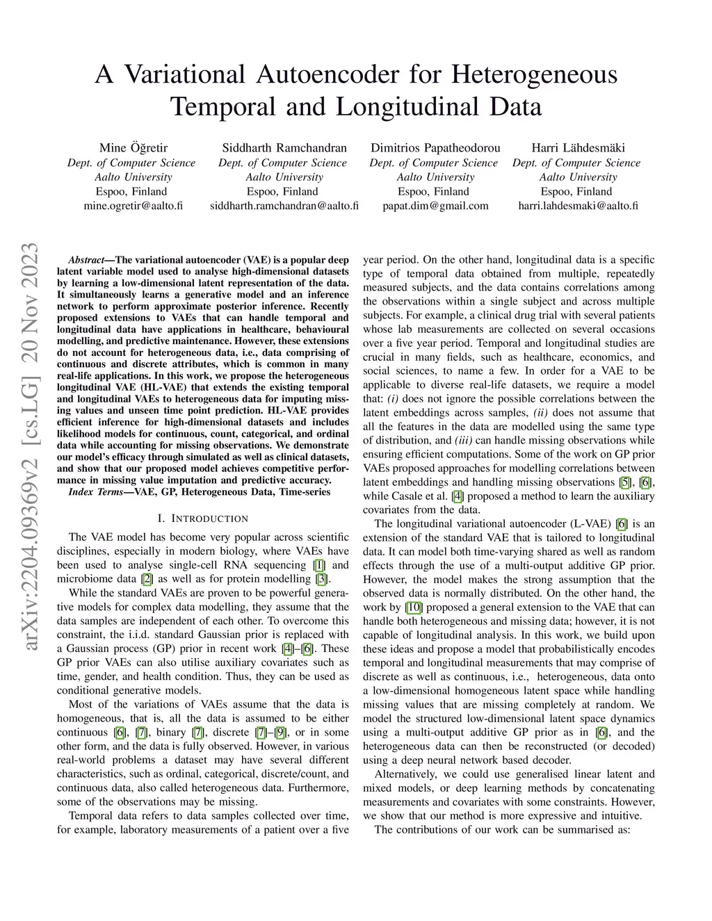 A Variational Autoencoder for Heterogeneous Temporal and Longitudinal
