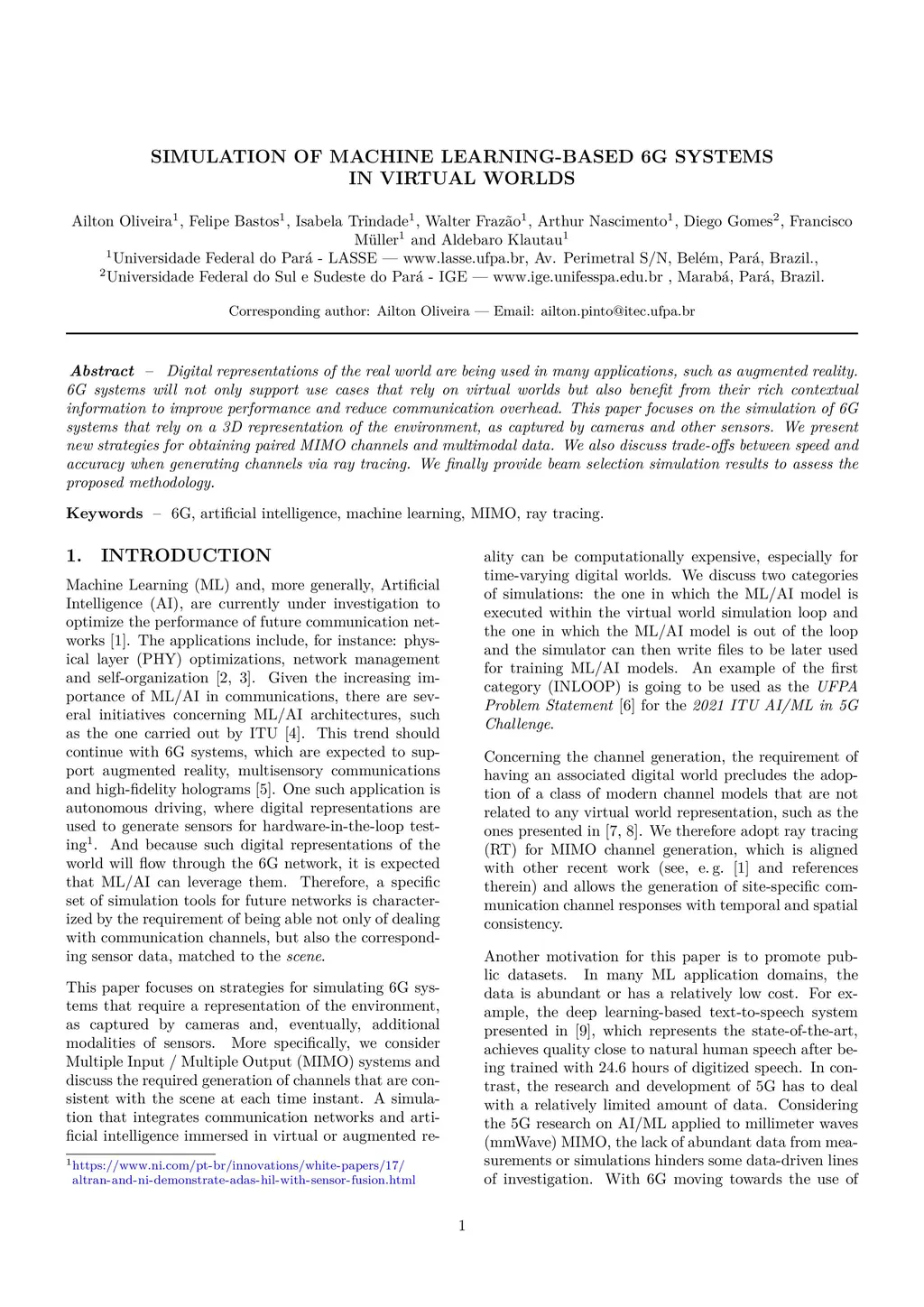 Simulation of machine learning-based 6G systems in virtual worlds
