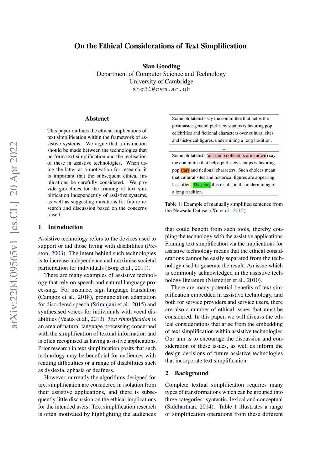 This paper outlines the ethical implications of text simplification within the framework of assistive systems. We argue that a distinction should be made between the technologies that perform text simplification and the realisation of these in assistive technologies. When using the latter as a motivation for research, it is important that the subsequent ethical implications be carefully considered. We provide guidelines for the framing of text simplification independently of assistive systems, as well as suggesting directions for future research and discussion based on the concerns raised.