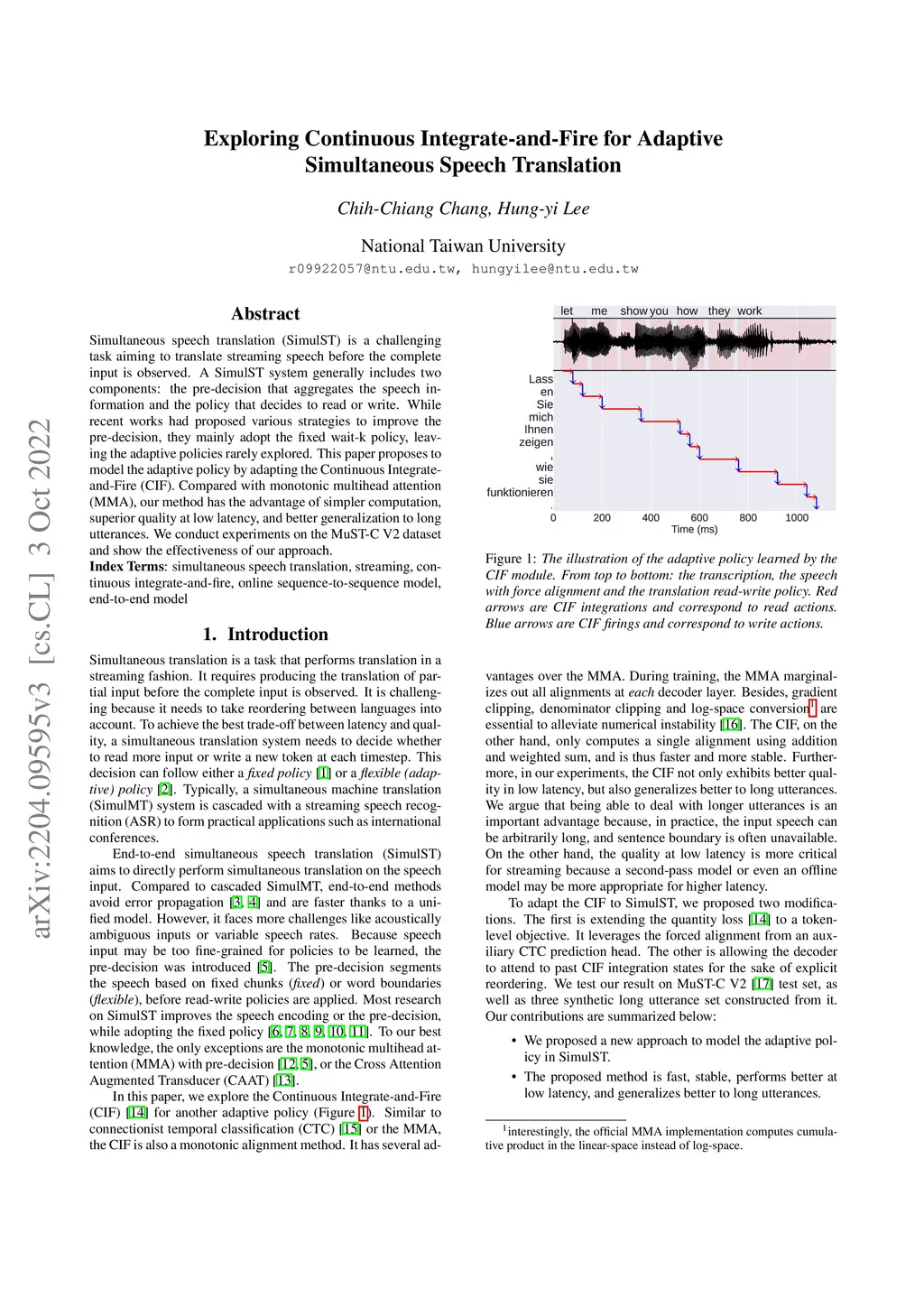 Simultaneous speech translation (SimulST) is a challenging task aiming to translate streaming speech before the complete input is observed. A SimulST system generally includes two components: the pre-decision that aggregates the speech information and the policy that decides to read or write. While recent works had proposed various strategies to improve the pre-decision, they mainly adopt the fixed wait-k policy, leaving the adaptive policies rarely explored. This paper proposes to model the adaptive policy by adapting the Continuous Integrate-and-Fire (CIF). Compared with monotonic multihead attention (MMA), our method has the advantage of simpler computation, superior quality at low latency, and better generalization to long utterances. We conduct experiments on the MuST-C V2 dataset and show the effectiveness of our approach.