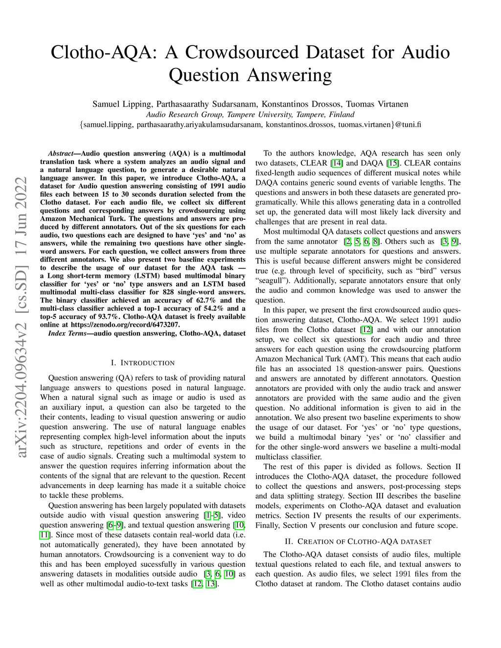 Clotho-AQA: A Crowdsourced Dataset for Audio Question Answering