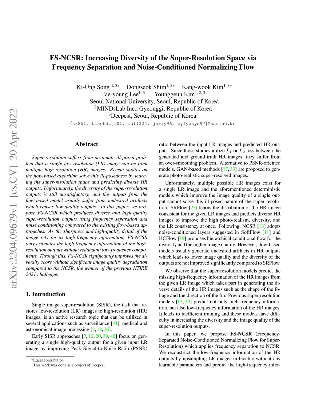 FS-NCSR: Increasing Diversity of the Super-Resolution Space via
