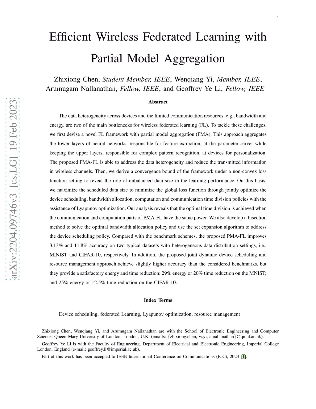 Efficient Wireless Federated Learning with Partial Model Aggregation