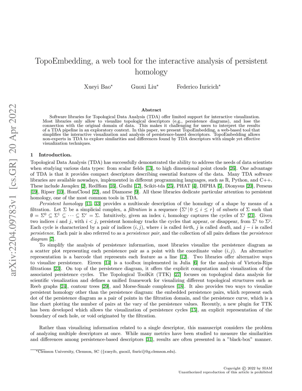 TopoEmbedding, a web tool for the interactive analysis of persistent