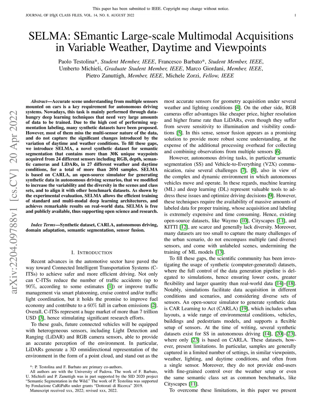 SELMA: SEmantic Large-scale Multimodal Acquisitions in Variable Weather,