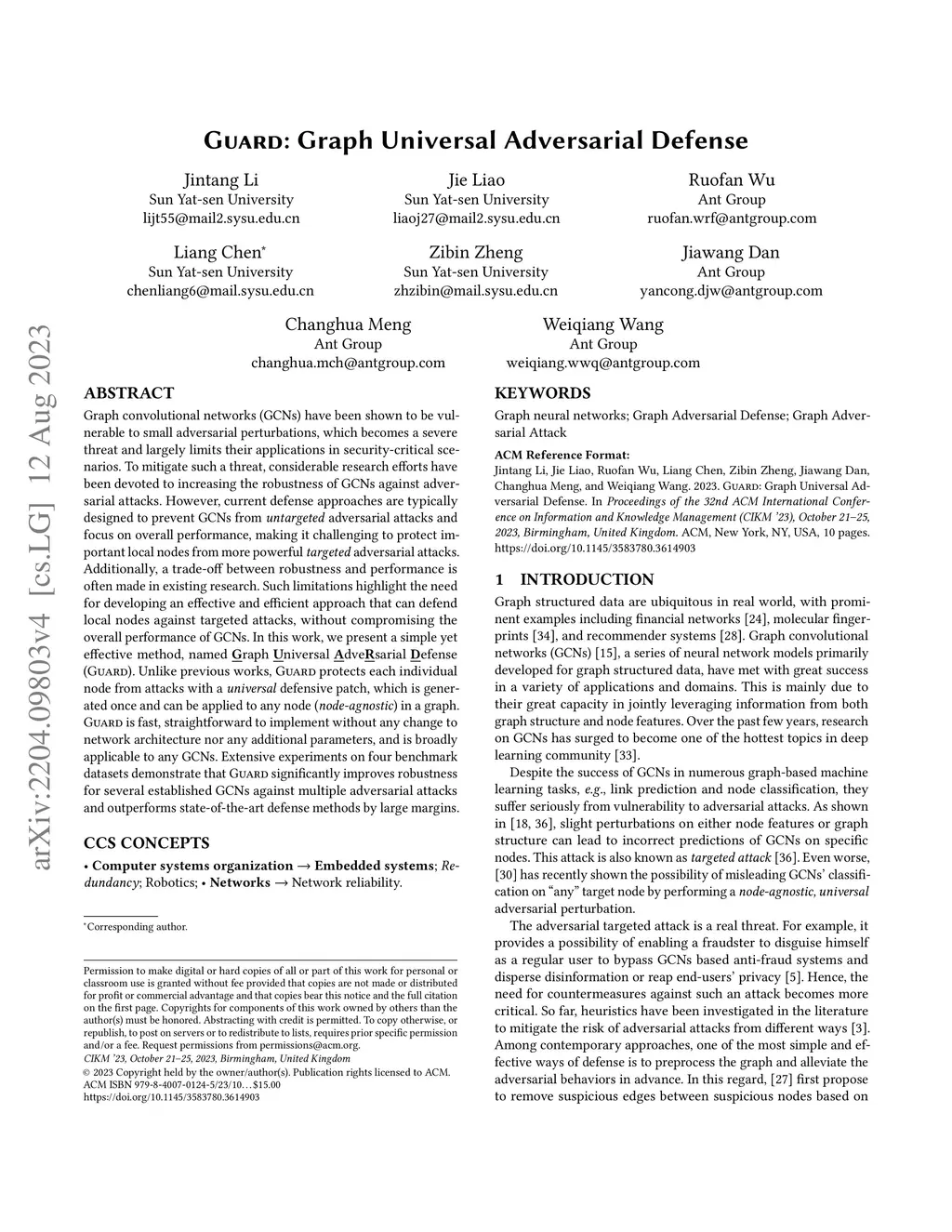GUARD: Graph Universal Adversarial Defense