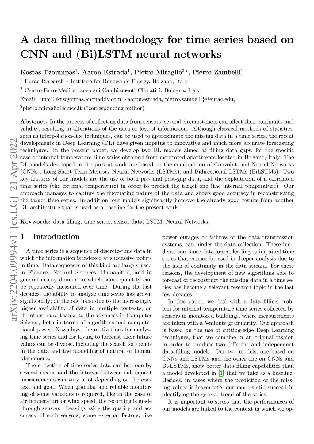 A data filling methodology for time series based on CNN and (Bi)LSTM
