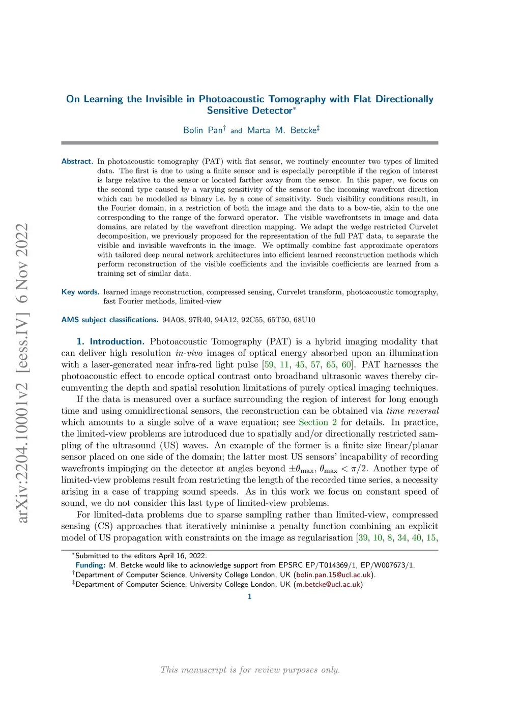 In photoacoustic tomography (PAT) with flat sensor, we routinely encounter two types of limited data. The first is due to using a finite sensor and is especially perceptible if the region of interest is large relatively to the sensor or located farther away from the sensor. In this paper, we focus on the second type caused by a varying sensitivity of the sensor to the incoming wavefront direction which can be modelled as binary i.e. by a cone of sensitivity. Such visibility conditions result, in Fourier domain, in a restriction of both the image and the data to a bowtie, akin to the one corresponding to the range of the forward operator. The visible ranges, in image and data domains, are related by the wavefront direction mapping. We adapt the wedge restricted Curvelet decomposition, we previously proposed for the representation of the full PAT data, to separate the visible and invisible wavefronts in the image. We optimally combine fast approximate operators with tailored deep neural network architectures into efficient learned reconstruction methods which perform reconstruction of the visible coefficients and the invisible coefficients are learned from a training set of similar data.