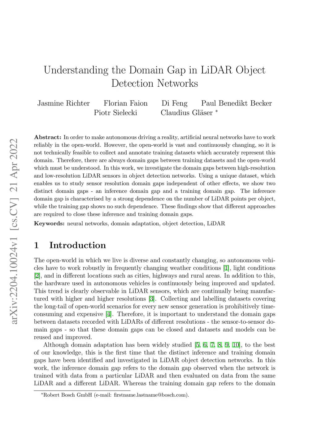 In order to make autonomous driving a reality, artificial neural networks have to work reliably in the open-world. However, the open-world is vast and continuously changing, so it is not technically feasible to collect and annotate training datasets which accurately represent this domain. Therefore, there are always domain gaps between training datasets and the open-world which must be understood. In this work, we investigate the domain gaps between high-resolution and low-resolution LiDAR sensors in object detection networks. Using a unique dataset, which enables us to study sensor resolution domain gaps independent of other effects, we show two distinct domain gaps - an inference domain gap and a training domain gap. The inference domain gap is characterised by a strong dependence on the number of LiDAR points per object, while the training gap shows no such dependence. These fndings show that different approaches are required to close these inference and training domain gaps.