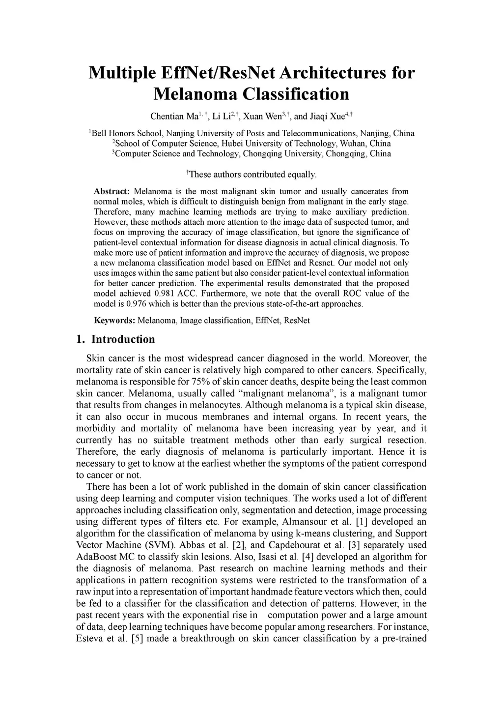 Multiple EffNet/ResNet Architectures for Melanoma Classification