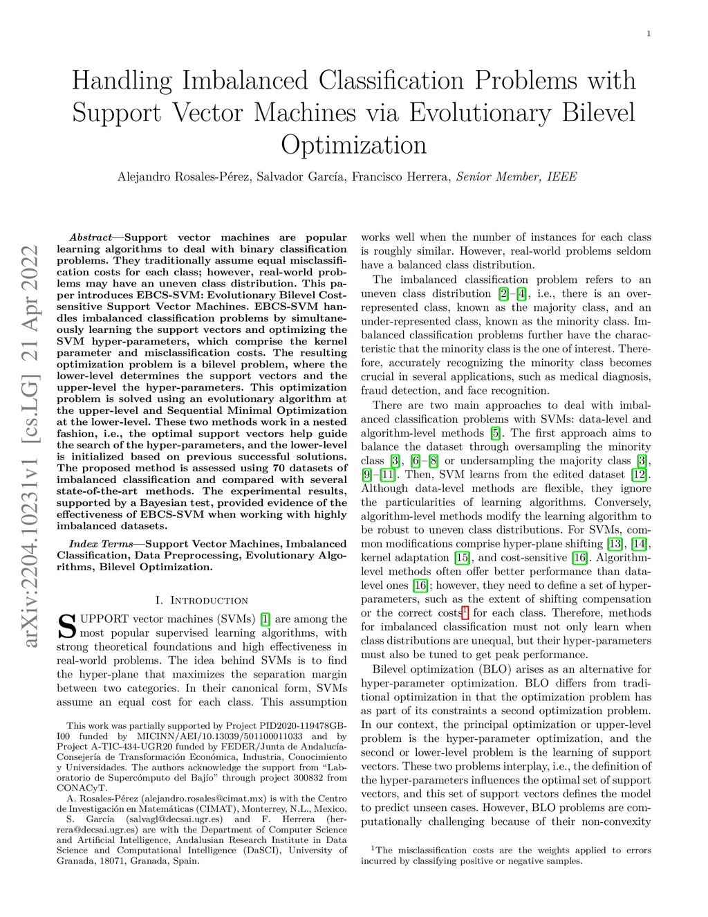 Handling Imbalanced Classification Problems With Support Vector Machines