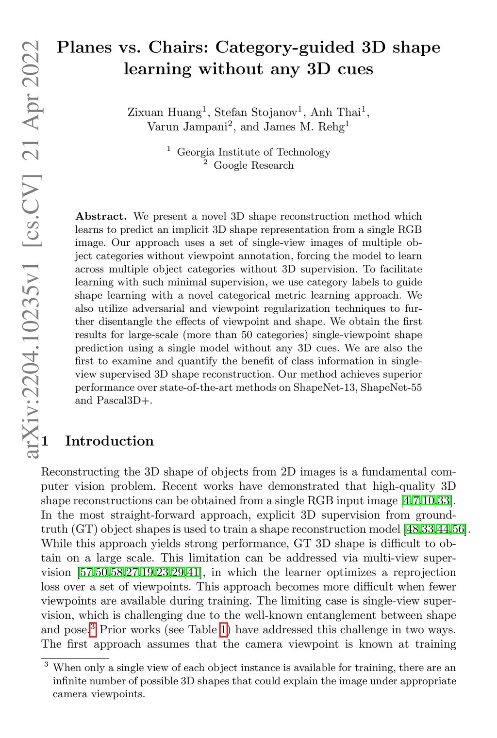 Planes vs. Chairs: Category-guided 3D shape learning without any 3D cues