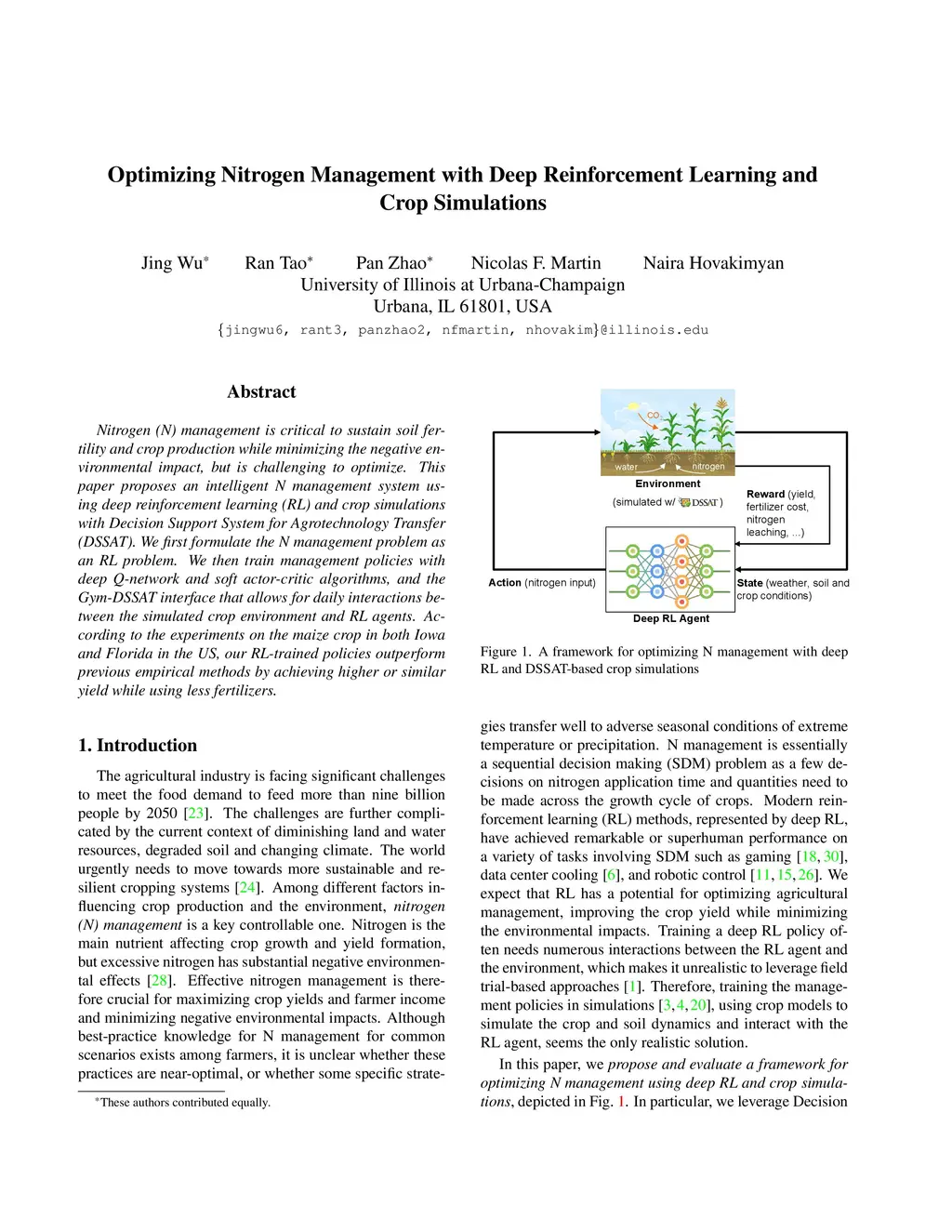 Optimizing Nitrogen Management with Deep Reinforcement Learning and Crop