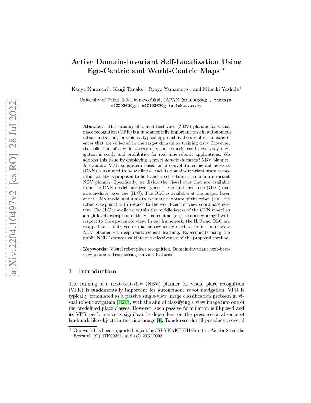 Active Domain-Invariant Self-Localization Using Ego-Centric and