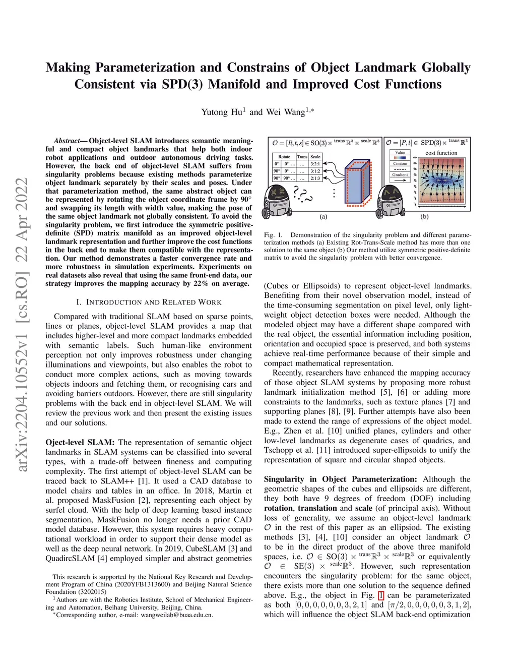 Object-level SLAM introduces semantic meaningful and compact object landmarks that help both indoor robot applications and outdoor autonomous driving tasks. However, the back end of object-level SLAM suffers from singularity problems because existing methods parameterize object landmark separately by their scales and poses. Under that parameterization method, the same abstract object can be represented by rotating the object coordinate frame by 90 deg and swapping its length with width value, making the pose of the same object landmark not globally consistent. To avoid the singularity problem, we first introduce the symmetric positive-definite (SPD) matrix manifold as an improved object-level landmark representation and further improve the cost functions in the back end to make them compatible with the representation. Our method demonstrates a faster convergence rate and more robustness in simulation experiments. Experiments on real datasets also reveal that using the same front-end data, our strategy improves the mapping accuracy by 22% on average.