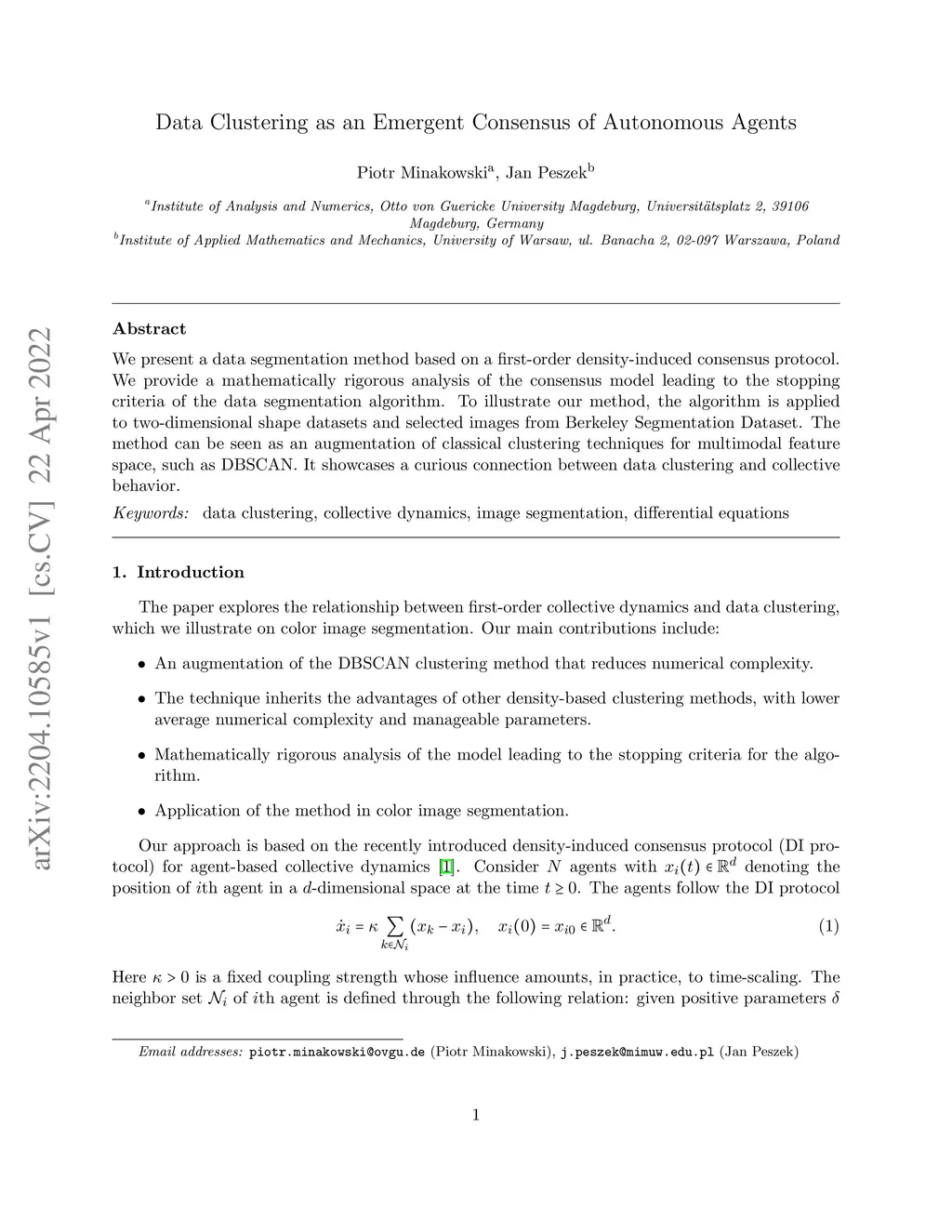 Data Clustering as an Emergent Consensus of Autonomous Agents