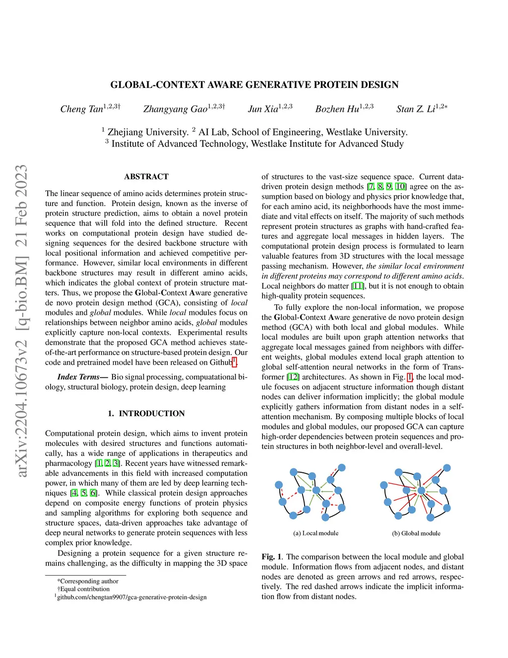 Generative De Novo Protein Design with Global Context