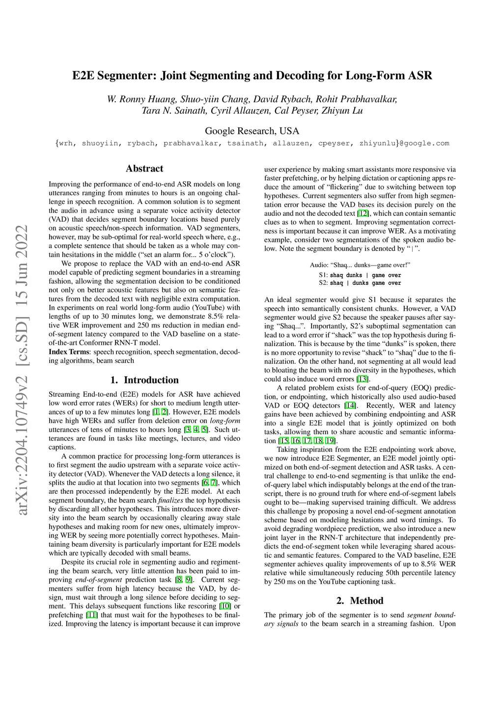 E2E Segmenter: Joint Segmenting and Decoding for Long-Form ASR