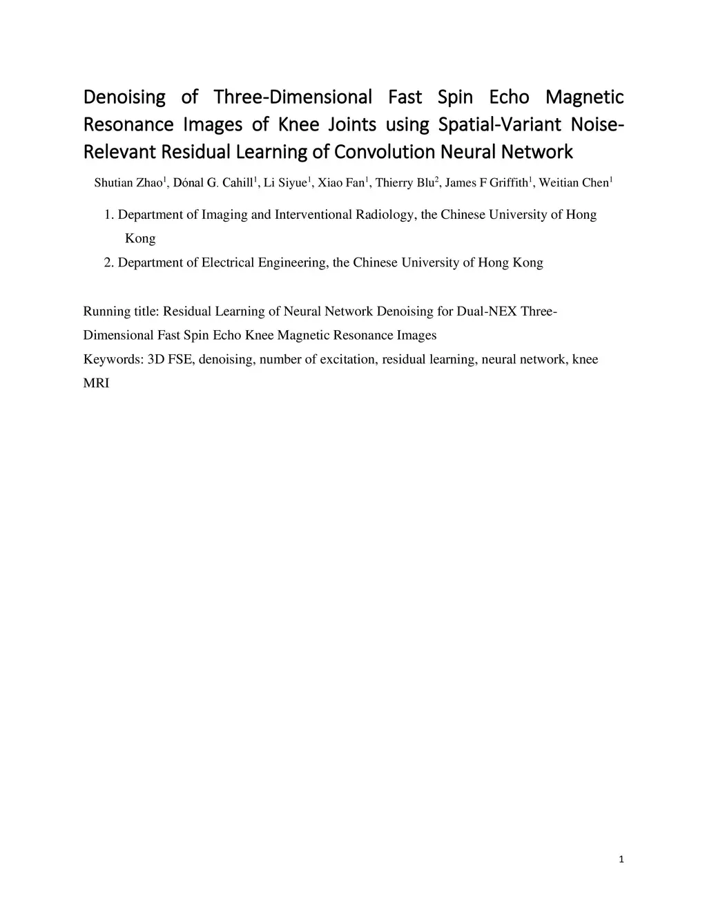 of Knee Joints using Spatial-Variant Noise-Relevant Residual Learning of